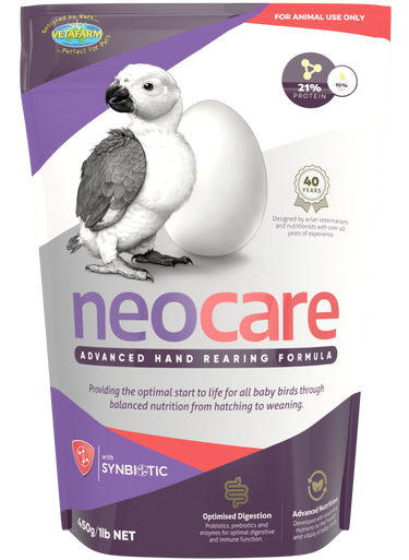 Recommended for: All parrots as a comprehensive hand-rearing solution. Ideal for use from hatching until weaning. Note: Neocare should not be combined with any other supplements unless directed by a veterinarian. Neocare is a vet-balanced diet, and mixing it with other foods or supplements may dilute its nutritional value and disrupt a young bird's diet.Expires on 30 Mar 2027