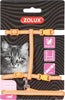 Harness set designed for cats featuring a 1.2-meter leash and an adjustable harness. PET IS VISIBLE: made with a reflective nylon strap. SIMPLE TO WEAR AND EASY TO CLEAN: harness equipped with plastic clip hooks. SAFETY: includes a metal snap hook.