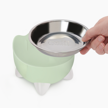 Catit PIXI Fountain Combo Pack - Green Treat your beloved cat with elegance using the matching PIXI drinking fountain and feeding bowl. This Combo pack comes complete with everything you need for a hassle-free dining experience, featuring 2 stainless steel feeding bowls and 3 fountain filters for effortless upkeep. Charming & ergonomic This charming Catit PIXI feeding bowl is raised on 4 tiny paws to achieve an ergonomic height. The stainless steel bowl is designed to be comfortably shallow, ensuring it doesn’t irritate your cat’s whiskers while they enjoy their meal. Various drinking options for optimal comfort The Catit PIXI® Fountain provides 3 distinct drinking styles to cater to discerning drinkers: a softly flowing pool, an arching jet (complete with spout), and a bubbling top with a gentle stream. Whisper-quiet operation, ideal for snoozing pets Thanks to the fountain pump being suspended in water, it absorbs nearly all motor vibrations, resulting in an exceptionally quiet experience. Low water level alert with automatic shutdown The pump features a sensor that activates a visual alert when the fountain requires a refill. If the water level becomes too low, the pump will automatically shut off to avoid any potential damage. Once you refill the reservoir, the pump will resume operation. Triple action filtration The Catit PIXI® Fountain is equipped with a filter that cleans your cat’s drinking water in three effective ways. Only use certified Catit PIXI® Fountain Filters. For the best results, replace the filter every 30 days. The fountain’s indicator will start blinking blue to signal that it’s time for a filter change.