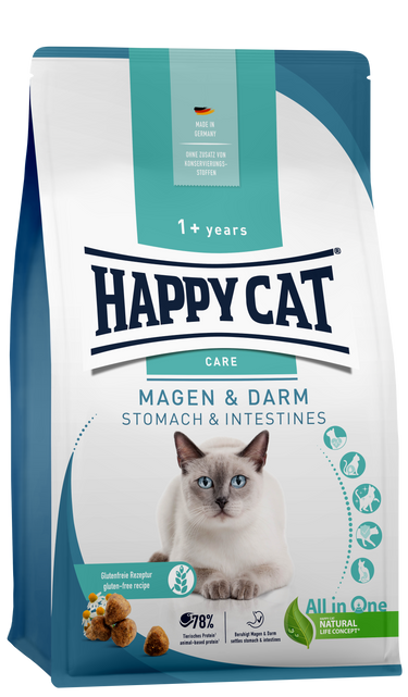 Additionally, Happy Cat Care Stomach & Intestines is also offered as a wet food in convenient pouches.