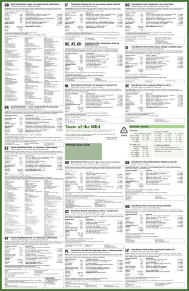 This formula contains 42% protein, delivering easily digestible energy suitable for cats at any life stage. The distinctive blend of roasted venison and smoked salmon supplies your feline friend with optimal protein, essential for maintaining a lean and healthy physique, while legumes, vegetables, fruits, and thoughtfully chosen ingredients offer the well-rounded nutrition that nature designed. Ingredients Chicken meal, peas, sweet potatoes, chicken fat (preserved with mixed tocopherols), pea protein, potato protein, roasted venison, smoked salmon, natural flavor, ocean fish meal, DL-Methionine, potassium chloride, taurine, choline chloride, dried chicory root, tomatoes, blueberries, raspberries, yucca schidigera extract, dried Lactobacillus plantarum fermentation product, dried Bacillus subtilis fermentation product, dried Lactobacillus acidophilus fermentation product, dried Enterococcus faecium fermentation product, dried Bifidobacterium animalis fermentation product, zinc proteinate, vitamin E supplement, niacin, manganese proteinate, copper proteinate, zinc sulfate, manganese sulfate, copper sulfate, thiamine mononitrate (vitamin B1), vitamin A supplement, biotin, potassium iodide, calcium pantothenate, riboflavin (vitamin B2), pyridoxine hydrochloride (vitamin B6), vitamin B12 supplement, manganous oxide, sodium selenite, vitamin D supplement, folic acid. This product includes a source of live (viable), naturally occurring microorganisms. Guaranteed Analysis *Not recognized as an essential nutrient by the AAFCO Cat Food Nutrient Profiles. Calorie Content 3,745 kcal/kg (390 kcal/cup) Calculated Metabolizable Energy Feeding Guide For adult cats that are pregnant or nursing, we suggest offering food freely. Depending on their activity levels and other factors, some cats may need more or less food than the suggested amounts. AAFCO Statement Taste of the Wild Rocky Mountain Feline Recipe has been formulated to meet the nutritional standards set by the AAFCO Cat Food Nutrient Profiles for all life stages.