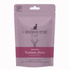 Introduction:Spoil your beloved cats with The Innocent Cat Chicken & Duck Slices with Catnip Grain-Free Cat Treats. These gourmet, hypoallergenic bites are made from fresh British meat, providing a delicious mix of chicken, duck, and a touch of catnip. Ideal for even the pickiest eaters, these grain-free snacks are perfect for cats following raw diets.Product Features:• Fresh British Meat: Composed of 40% British chicken and 40% British duck for a flavorful and nutritious treat.• Grain-Free: An excellent choice for cats sensitive to grains or those with allergies.• Hypoallergenic: Thoughtfully crafted to be soothing on your cat's digestive system.• Dual Protein: Merges two premium protein sources for a wholesome snack.• Suitable for Raw Diets: Enhances raw feeding plans with high-quality, natural ingredients.• With Catnip: Enriched with 0.5% catnip to attract and entertain your feline friend.Technical Details/Specifications:• Weight: 70g• Calories: 347 kcal/100g, 2.3 kcal/treat• Packaging: Easy resealable pouch to keep them fresh.Instructions:Keep in a cool, dry area. Always provide fresh water for your cat.