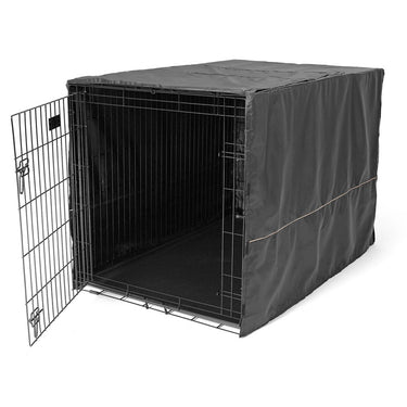 Offer your dog the privacy, security, and comfort they naturally seek and crave Designed to easily fit over MidWest Pet Crates Hook-and-loop fasteners keep the covers securely in place Covers provide access to crate doors, regardless of whether there are one, two, or three doors; suitable for both end and side openings Made from durable 100% polyester fabric that is safe for both washing and drying Stylish Black polyester complemented with Tan details Available in sizes 22, 24, 30, 36, 42, and 48 inches