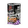 Chicken 53% (Meat 48%, liver 5%), pork 15%, duck 20%, potato starch, soy protein, glycerin, collagen, dehydrated egg, pea fiber, spices.