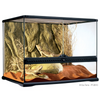 The Exo Terra Glass Terrarium is the perfect habitat for reptiles or amphibians, crafted by European herpetologists. The front-opening doors make it simple to access for cleaning and feeding. A specially designed locking mechanism ensures that your pets stay secure, and the doors can be opened independently. The full-screen top provides excellent ventilation, allowing for UVB and infrared light to penetrate, and it can be completely removed for effortless decorating or cleaning. At the back of the screen cover, you'll find five closable inlets on each side to conveniently install Heat Wave Rocks, waterfalls, sensors, and more inside the terrarium. The bottom plate is elevated to accommodate a substrate heater, which warms a portion of the extended ground area. The extra-tall fixed front window is perfect for deep substrate layers (ideal for burrowing reptiles), aquatic sections (for paludariums), or for placing an Exo Terra reptile den. The natural background matches the color of all other Exo Terra decorative items (such as Water Dishes, Waterfalls, Heat Wave Rocks, etc.) and adds an additional climbing opportunity. Dimensions: 60 x 45 x 60cm / 24" x 18" x 24" (WxDxH) - Ventilation through the front window - Dual doors for secure and easy access - Waterproof base - Elevated bottom frame - Stainless steel mesh cover - Locks to enhance security - Easy-twist locking mechanism for the screen cover; closable inlets for wires and/or tubing - Cut-out section at the back for wires and/or tubing Accessories (not included) - Compatible with the Compact Top Medium PT2227, Dual Top Medium PT2232, and the Light Dome PT2055/PT2057 - Hygro-, Thermo- and Combometer PT2477/PT2472/PT2470 - Lock PT2620 to restrict access