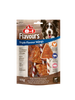 Our incredibly delicious 8in1 Flavours Triple Flavour Twisted Sticks feature three mouthwatering varieties of chewy pork and beef hide, all wrapped in tender chicken breast for an extra burst of flavor. These long-lasting chewy sticks not only provide enjoyment but also contribute to controlling tartar and plaque accumulation thanks to their natural abrasive properties during chewing. Packed with protein, low in fat, and completely free from added sugars, flavor enhancers, and artificial preservatives, these treats are the perfect reward or snack for dogs of all sizes. Plus, they are non-GMO and oven-baked, which enhances their durability while preserving essential nutrients. Keep your furry friend happily entertained with our 8in1 Triple Flavour Twisted Sticks. Dosage Treats should not exceed 10% of your dog's daily calorie intake. XS Dogs (1-<5kg): gradually offer one treat over two days. Do not exceed one treat in a two-day period. S Dogs (5-<10kg): give one treat per day. Do not exceed one treat in a one-day period. M Dogs (10-<25kg): serve up to two treats per day. Do not exceed two treats in a one-day period. L Dogs (25+kg): provide up to three treats per day. Do not exceed three treats in a one-day period. Application Choose a chew that is slightly larger than your pet’s mouth. Balance this rewarding snack with food intake and exercise. Always ensure fresh water is available. Supervise your dog while they are chewing.