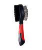 Begin by using the side equipped with plastic tips to untangle the fur. Start at the tips and gradually work your way towards the skin. Next, switch to the other side to remove dust, dirt, and any loose fur.