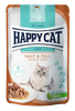 Happy Cat Meat in Sauce Stomach & Intestine is a highly digestible and exceptionally flavorful option that's grain-free, designed specifically for cats with sensitive digestive systems. The soft pieces in a savory sauce ease your feline friend's digestive tract while delivering all the essential nutrients needed for a healthy life. Guided by our Happy Cat Natural Life Concept®, our team of pet food specialists has created a unique vitality formula that addresses the five key requirements of a cat. Like all our cat foods featuring the All in One Concept, it promotes regular digestion, enhances the immune system, supports urinary health, fosters heart wellness, and contributes to your cat's skin and coat health.