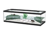 Measurements: 40x20x18 cm. The TORTUM tanks are specifically crafted for turtles and come with all essential components to establish a well-balanced environment. Constructed from glass, they feature a protective glass cover on the top. Additionally, a ramp is provided, allowing turtles to access a dry shelter. Please note that the 6 W LED light is sold separately.